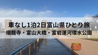 国内旅行 車なし1泊2日富山県瑞龍寺・富山大橋・富岩運河環水公園をめぐるひとり旅 幼少期からふりかえって、まだ行ったことがない県に行ってみて、47都道府県を制覇する旅、第8弾は富山県へ。前回行った、福井県の旅同様、名古屋駅から特急しらさぎと北陸新幹線つるぎを乗り継いで、富山県へ行きました。特急しらさぎと北陸新幹線つるぎで... 2026.02.21 国内旅行