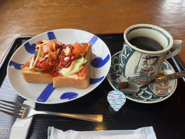 ピザトーストとホットコーヒーを注文。